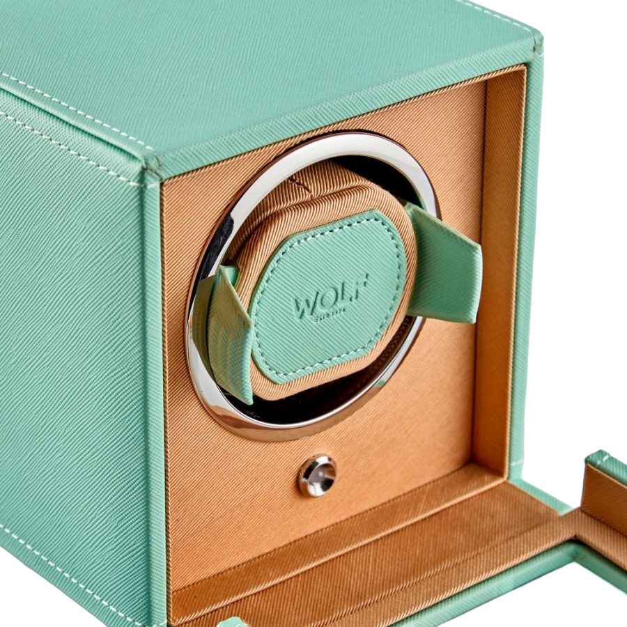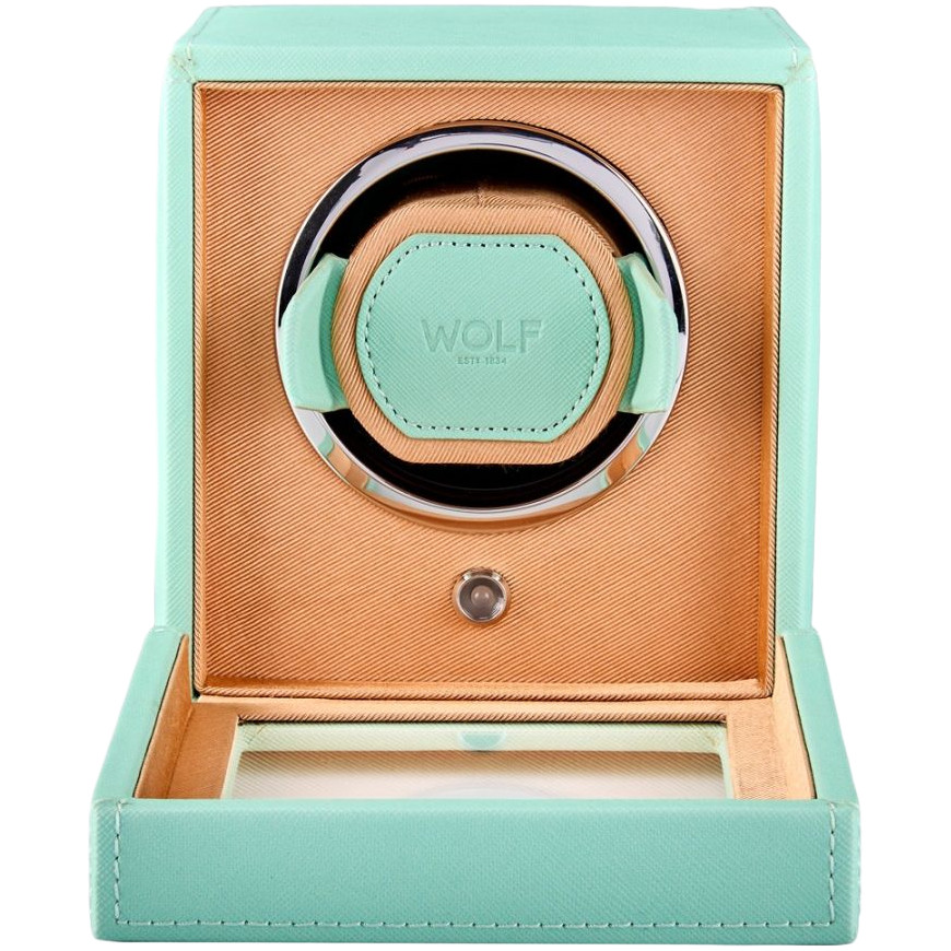 - A fresh look for the cub, a pre-programmed single watch winder with cover, combining cool mint and pretty peach with chrome hardware.