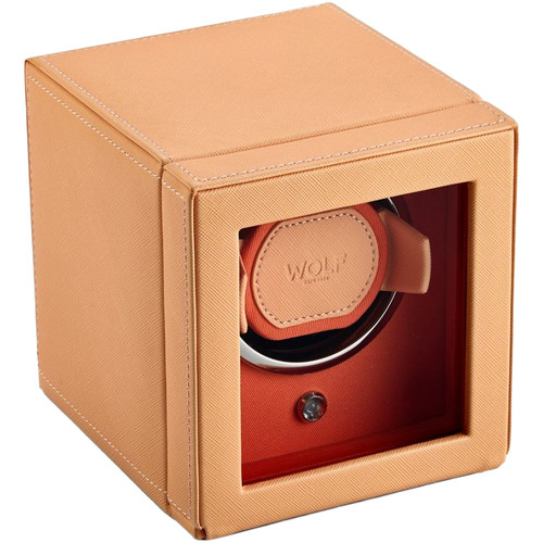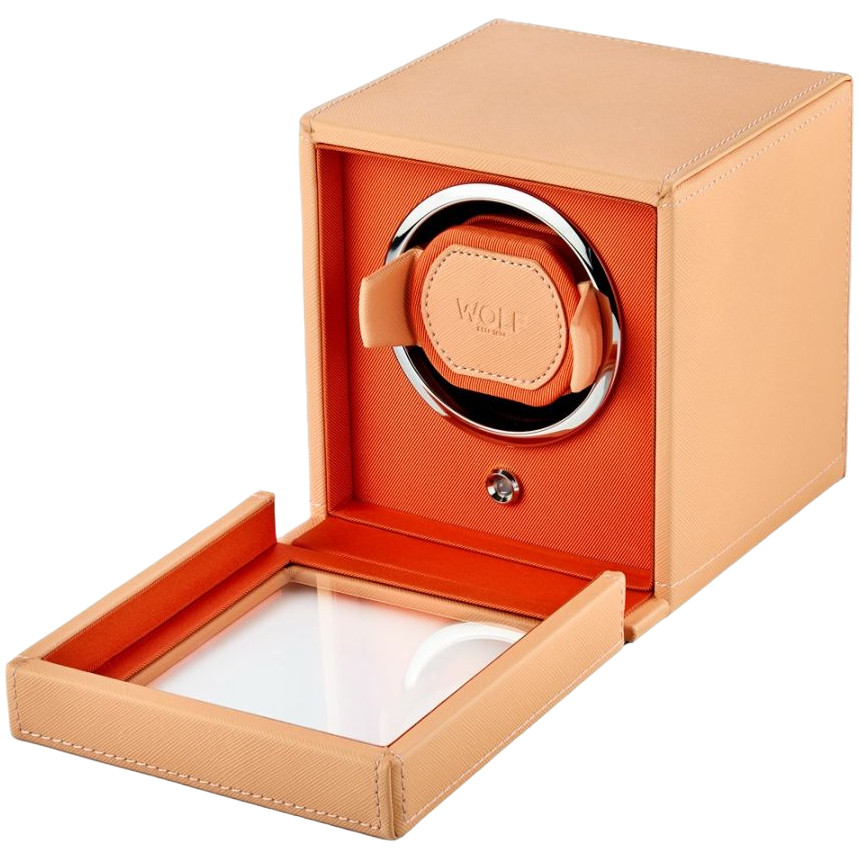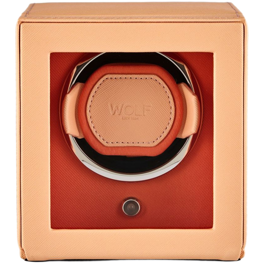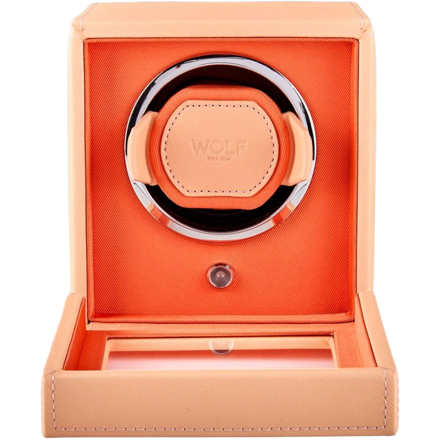 - A fresh look for the cub, a pre-programmed single watch winder with cover, combining pretty peach and bright orange with chrome hardware.
