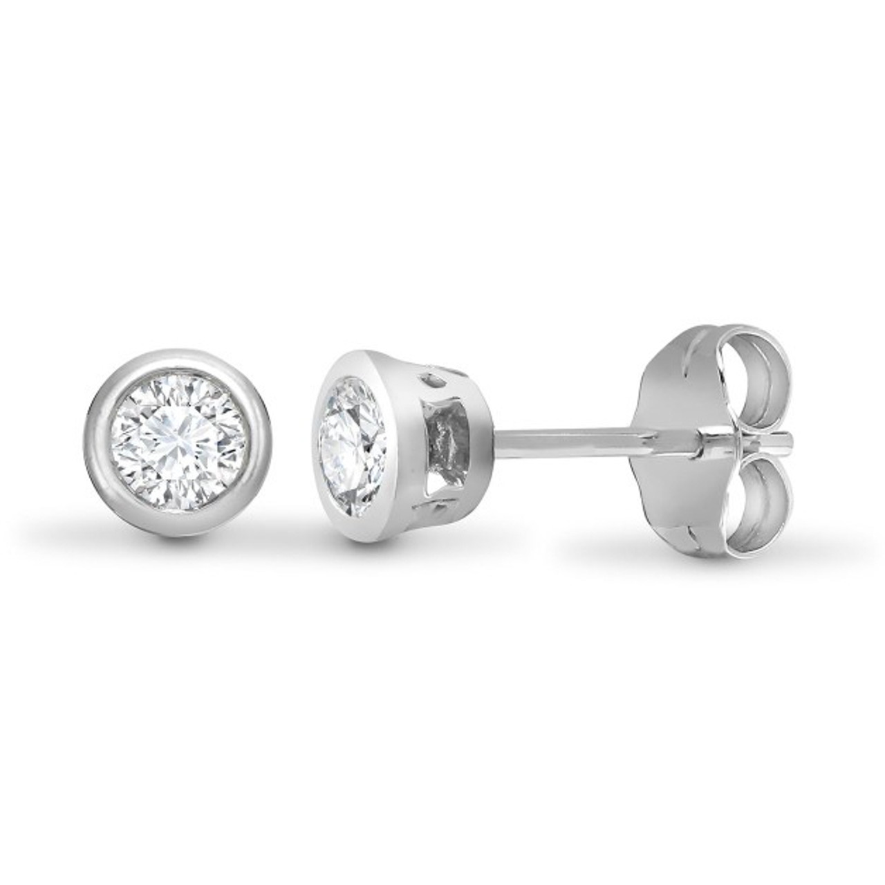 - Stunning 18 Carat White Gold 10pts Rub Over Diamond Stud Earrings.