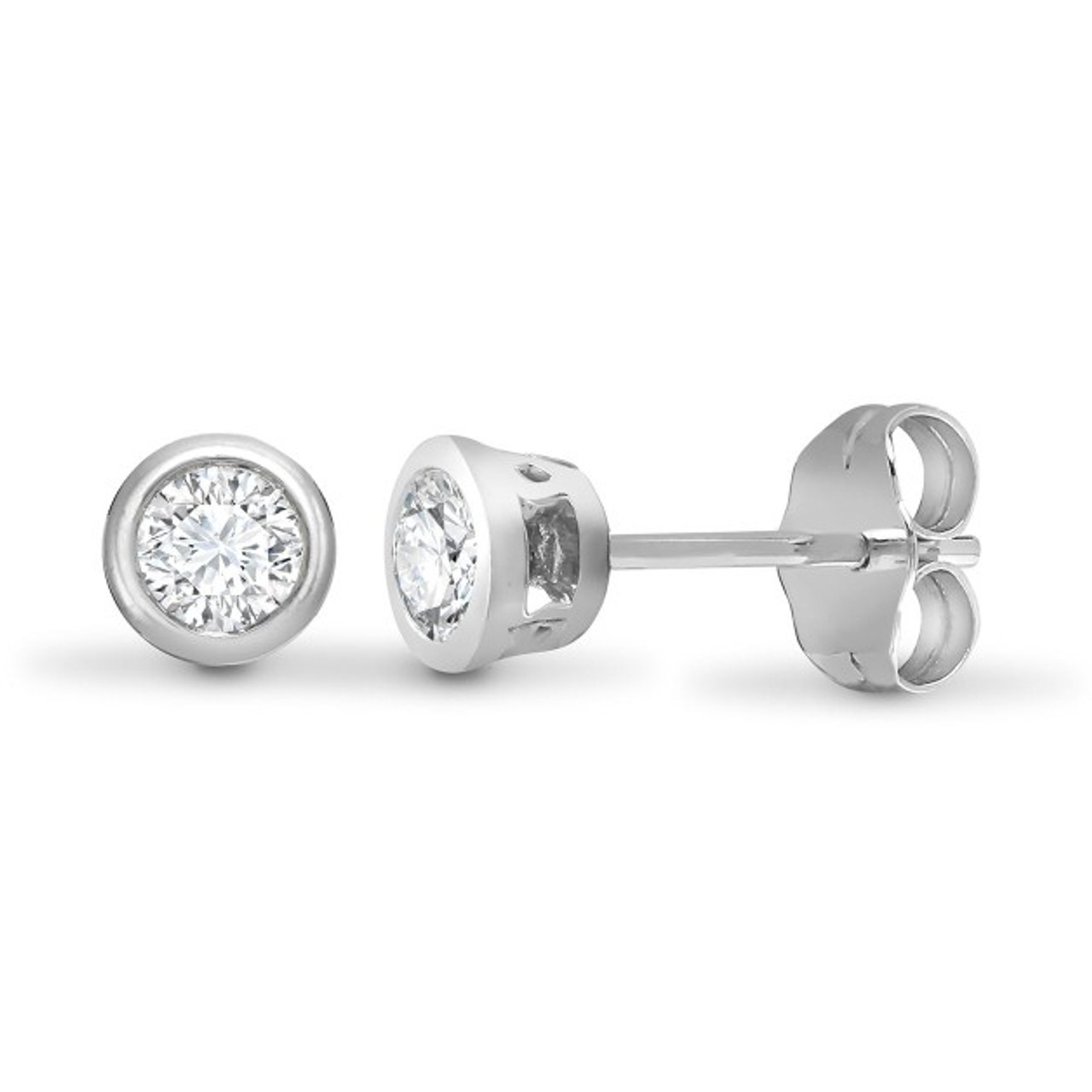 - Stunning 18 Carat White Gold 35pts Rub Over Diamond Stud Earrings.