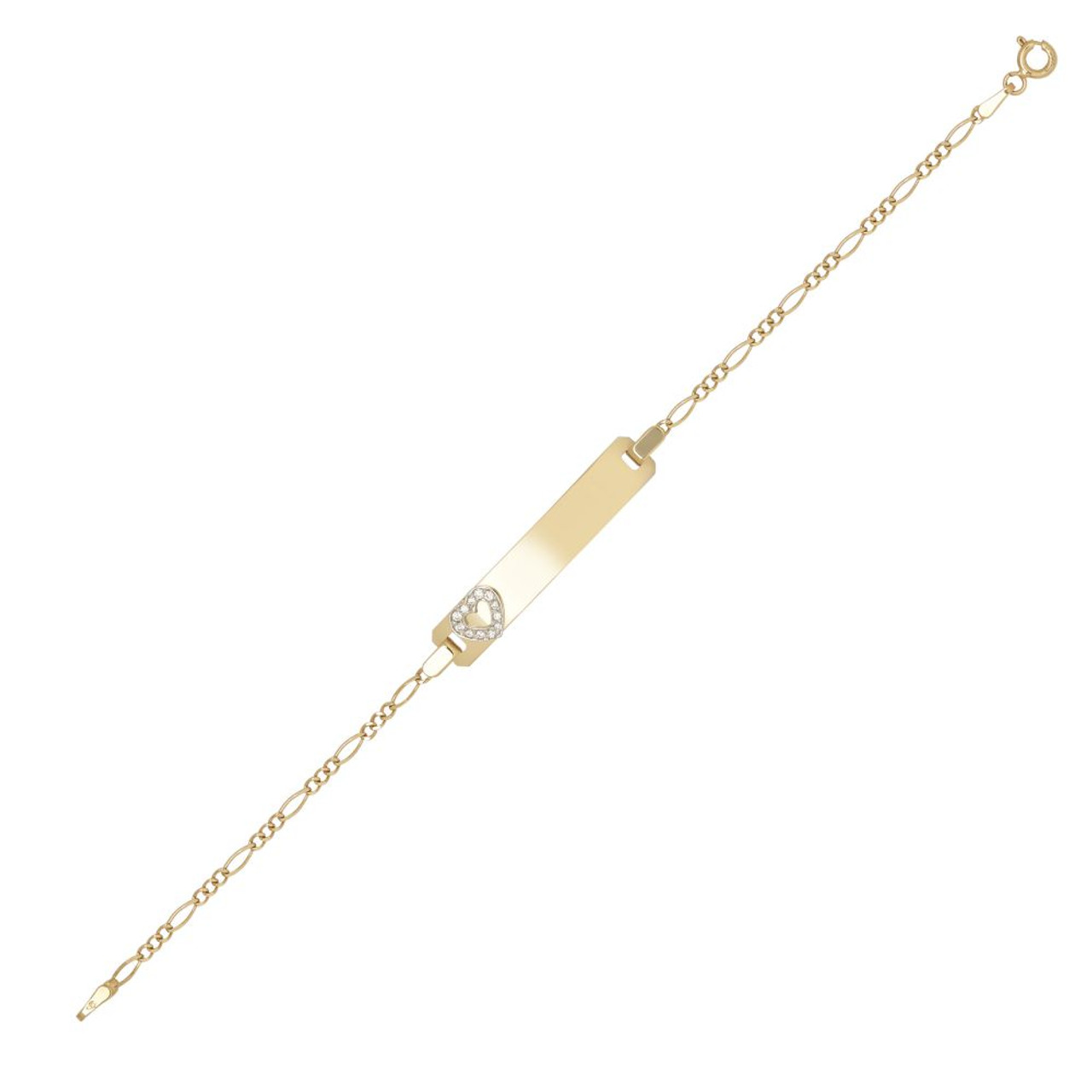 - Stunning 9 Carat Gold Figaro ID with Cubic Zirconia Set Heart 6inch Bracelet.