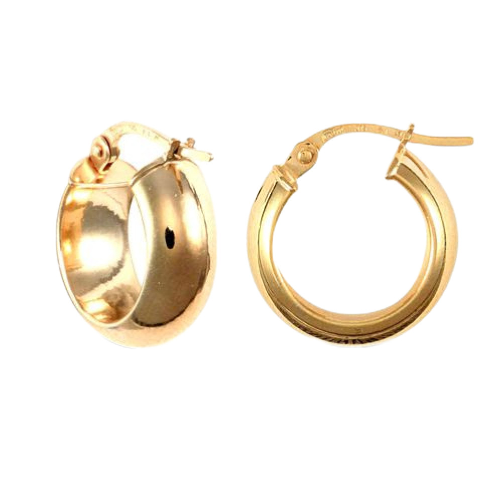 - Stunning 9 Carat Yellow Gold D-shaped Wedding Band Design 14mm Creole Hoops.