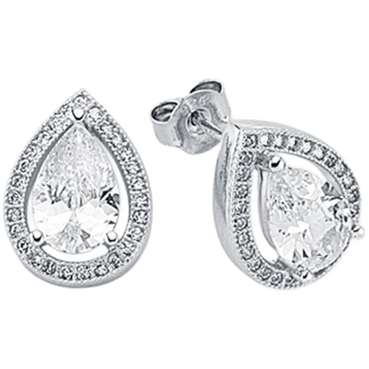- Stunning 925 Silver Cubic Zirconia Stud Earrings Pear Shape Halo.
