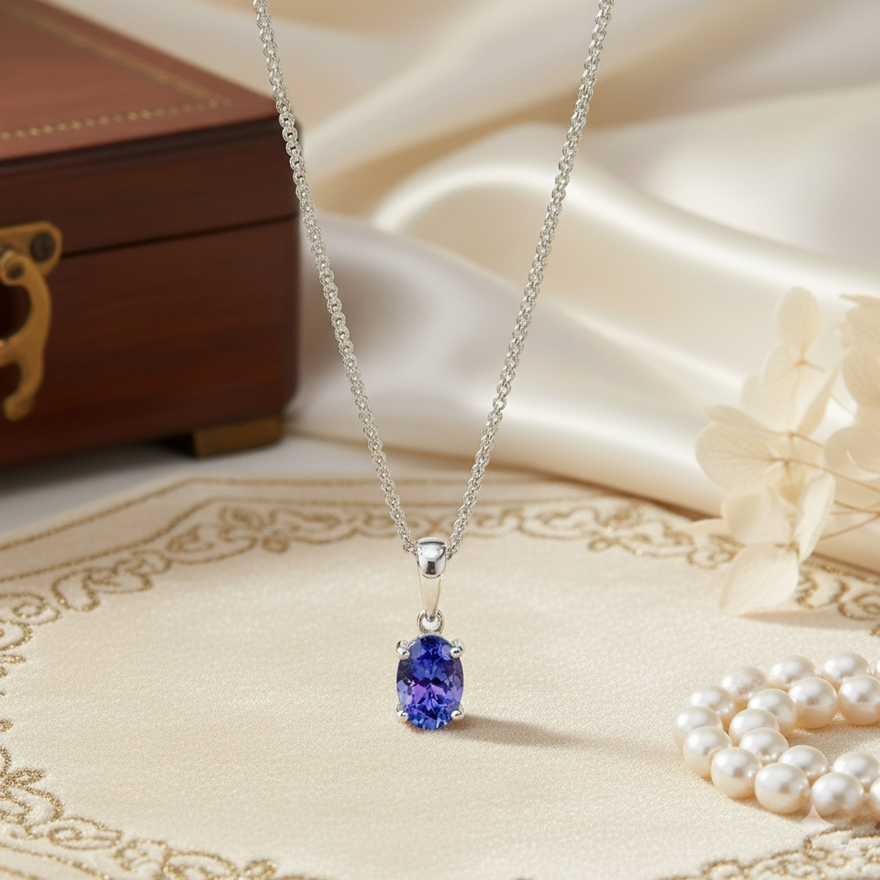 - Stunning 9 Carat White Gold Oval Tanzanite Claw Pendant.