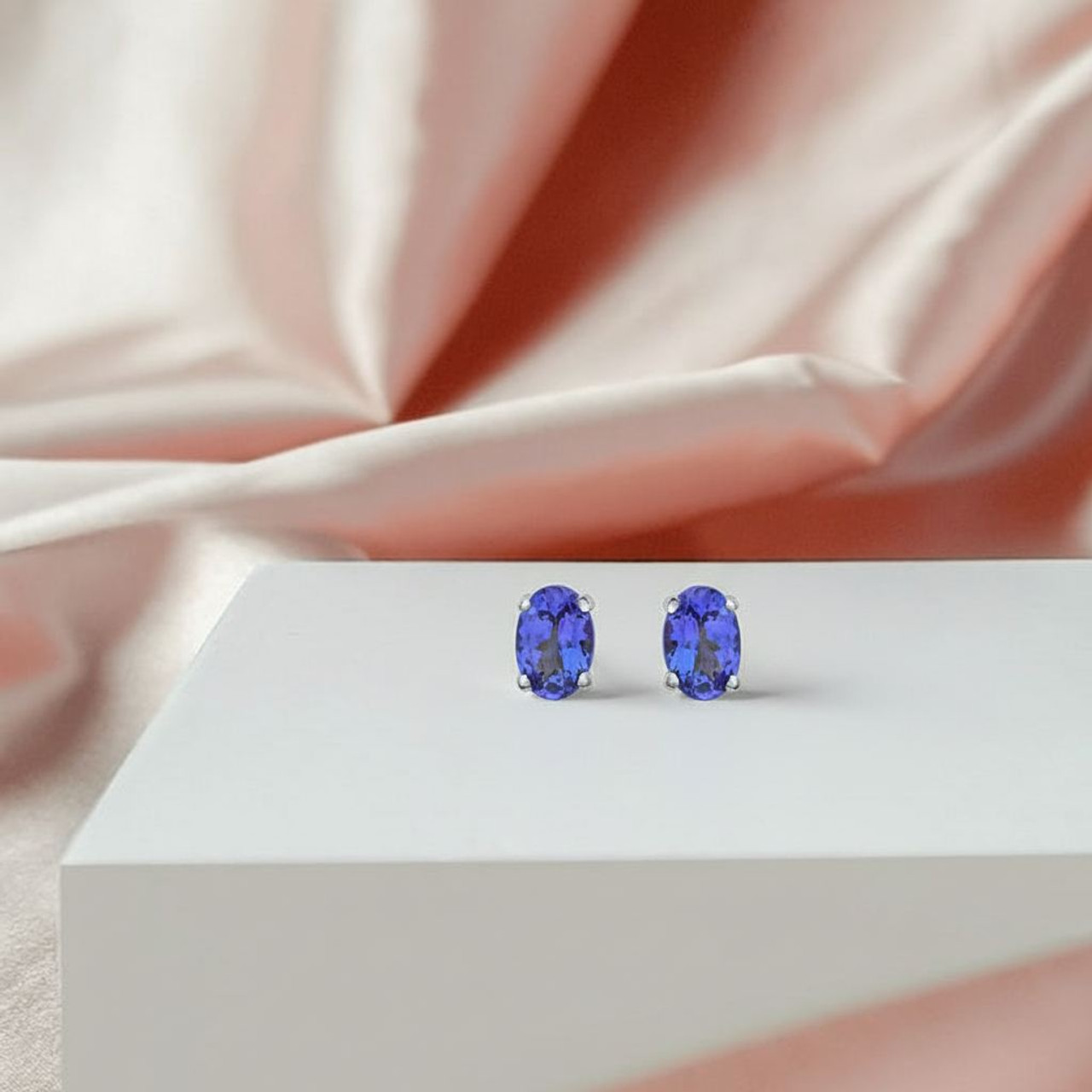 - Stunning 9 Carat White Gold Oval Tanzanite Stud Earrings.