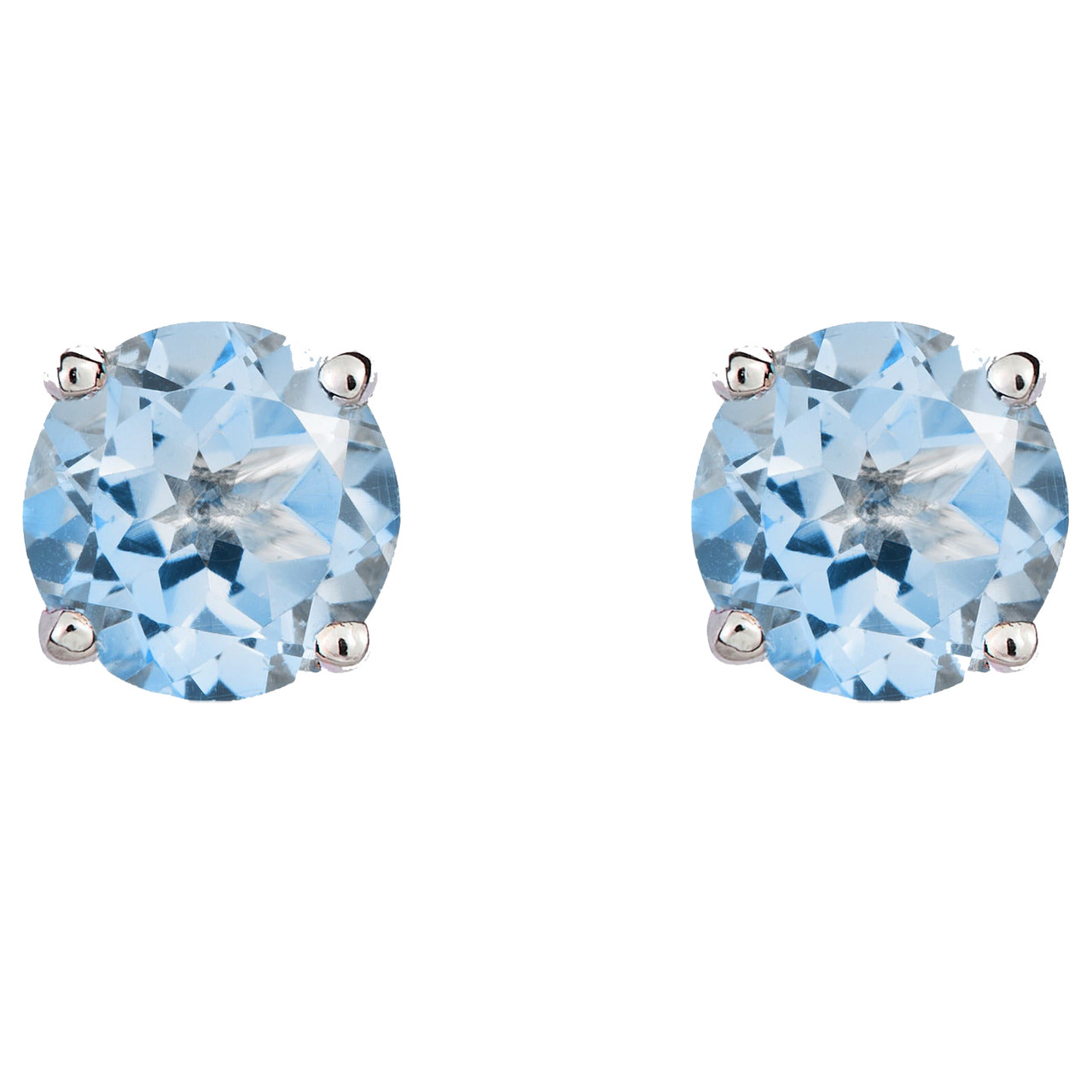 - Stunning 9 Carat White Gold Round Aquamarine Claw Stud Earrings.