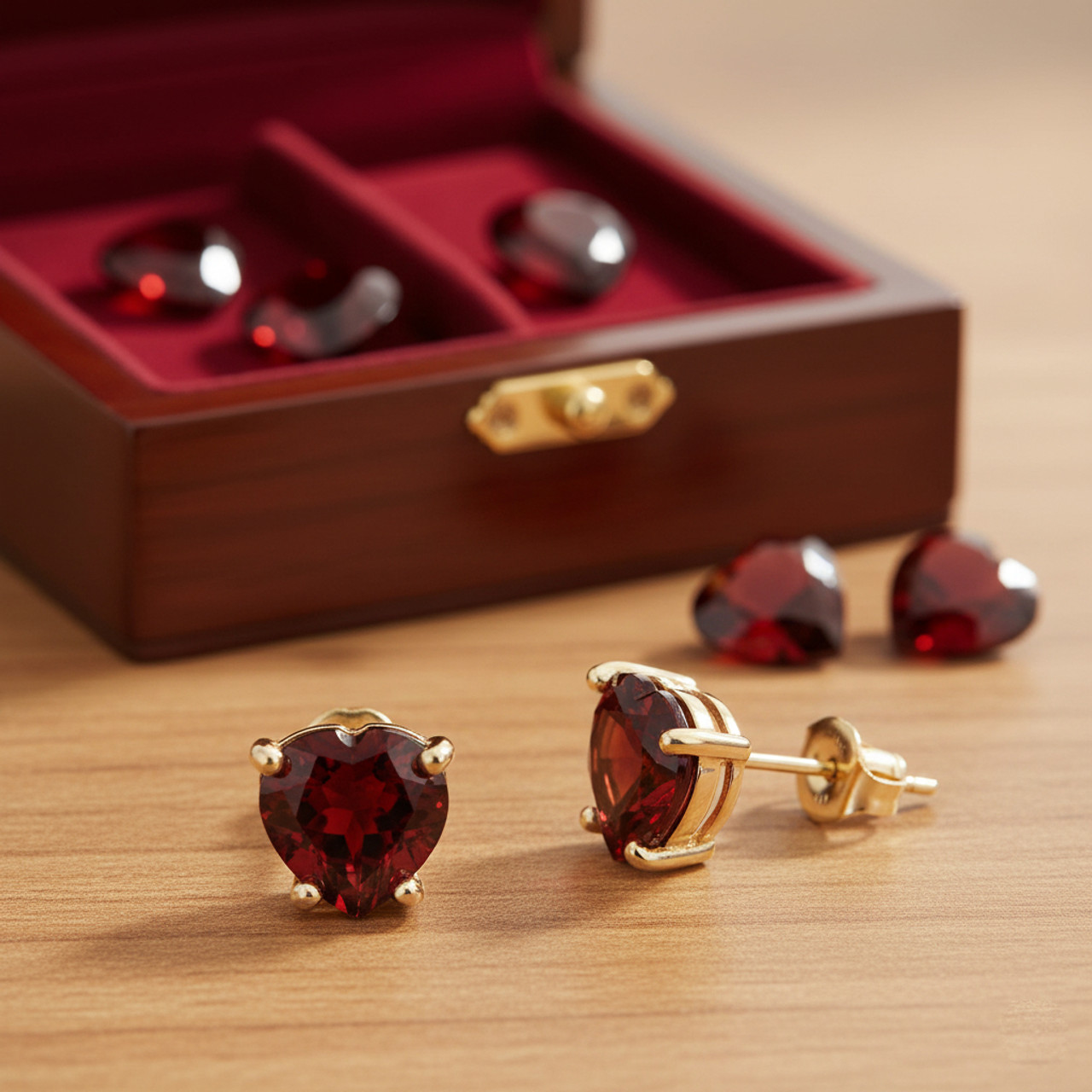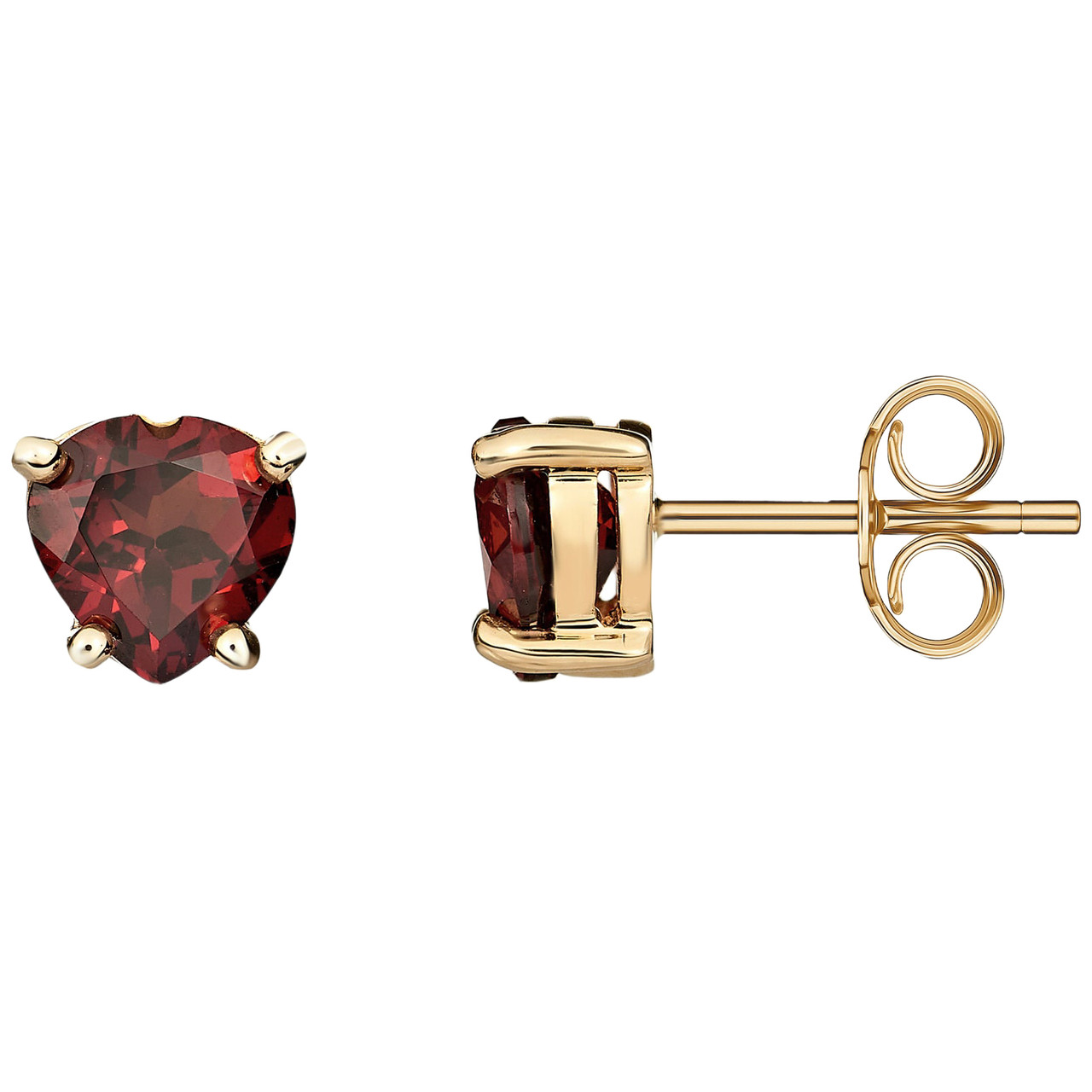 - Stunning 9 Carat Yellow Gold Heart Garnet Claw Stud Earrings.