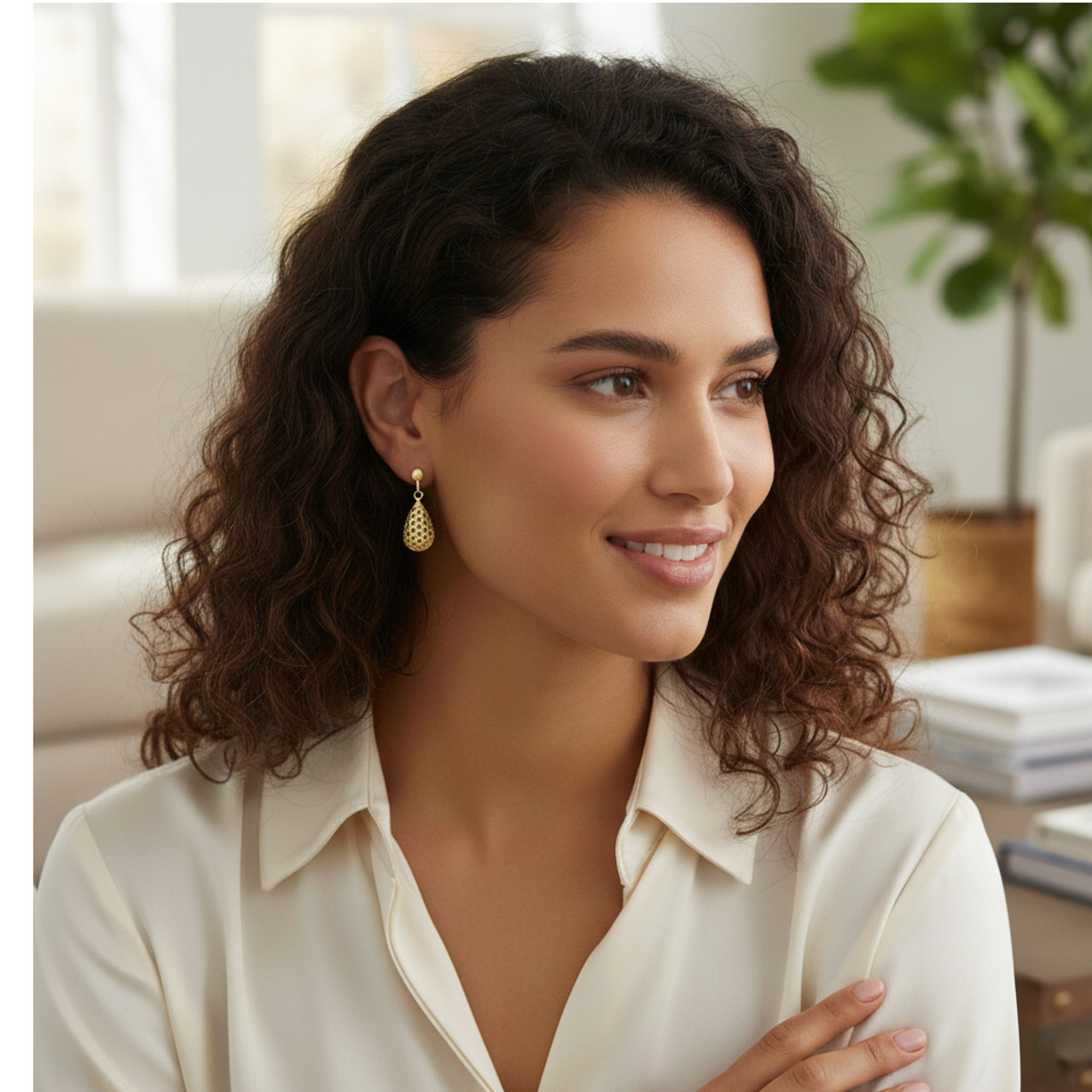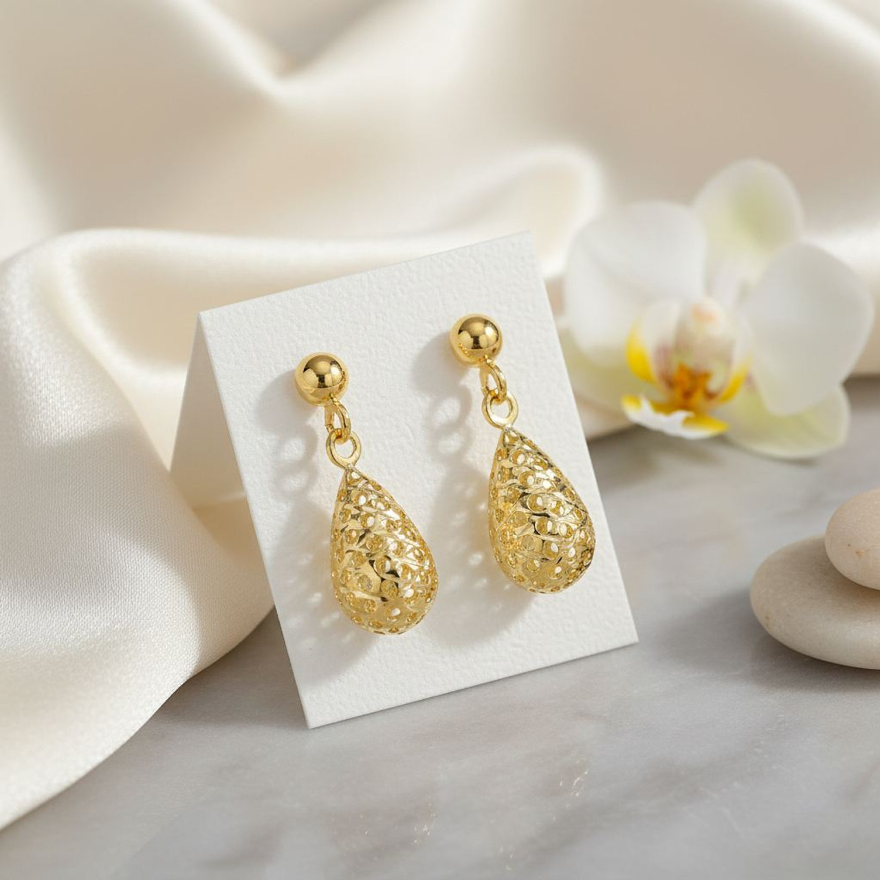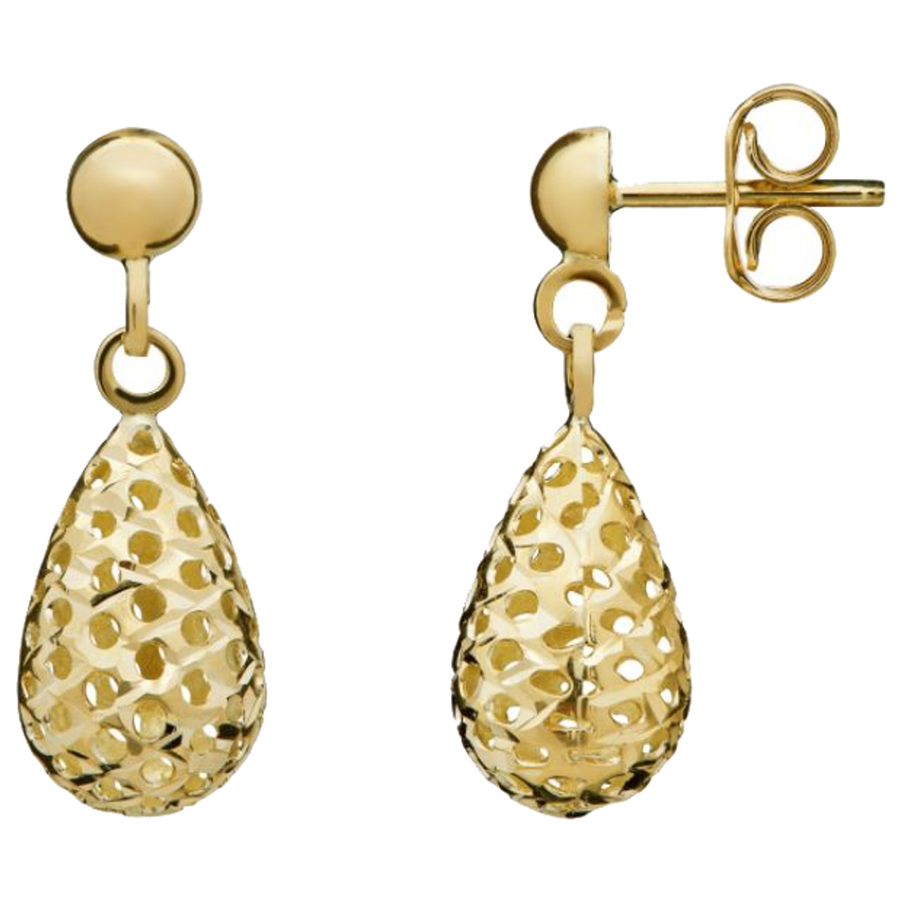- Stunning 9 Carat Yellow Gold Pierced Bombe Drop Earrings.