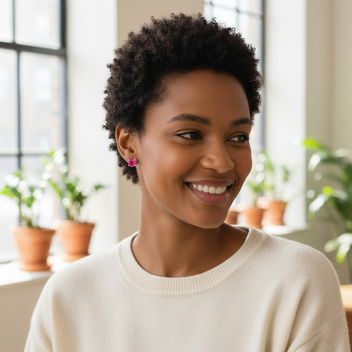 - Stunning 9 Carat Yellow Gold Round Ruby Claw Stud Earrings.