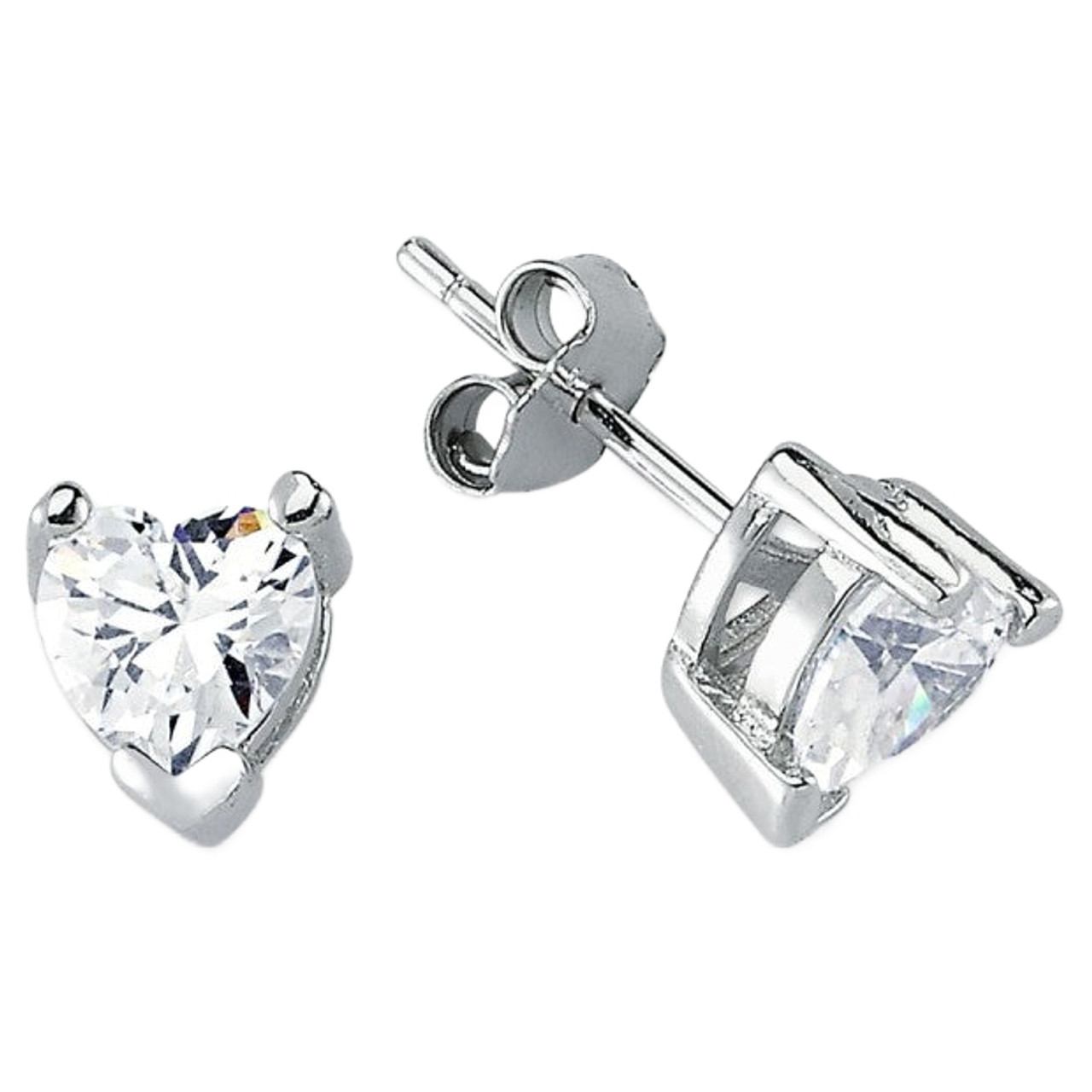- Stunning Sterling Silver Heart Shape Cubic Zirconia Studs.