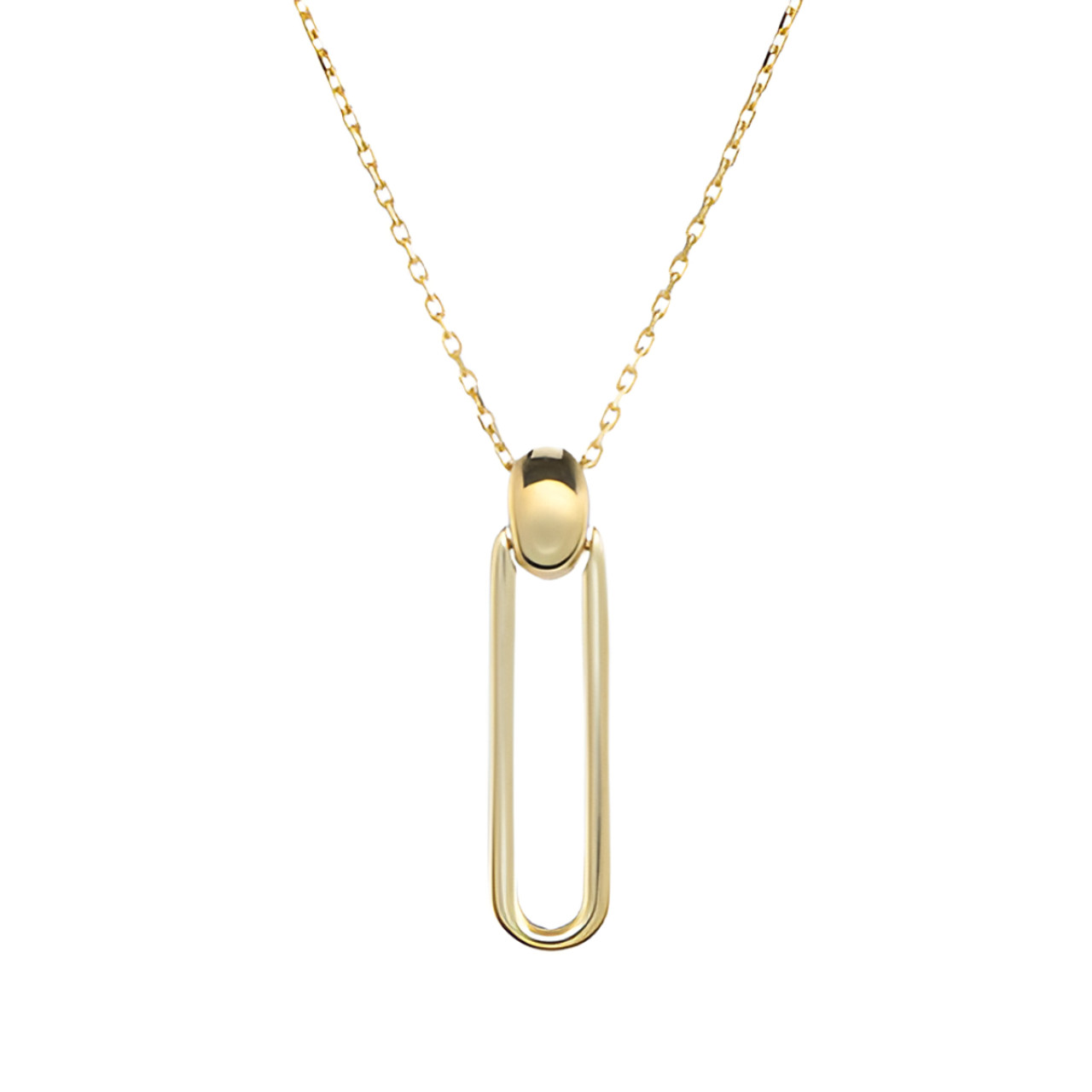 - A modern 9ct yellow gold paper clip necklace with chain, featuring a sleek 25x6mm design for everyday contemporary style.