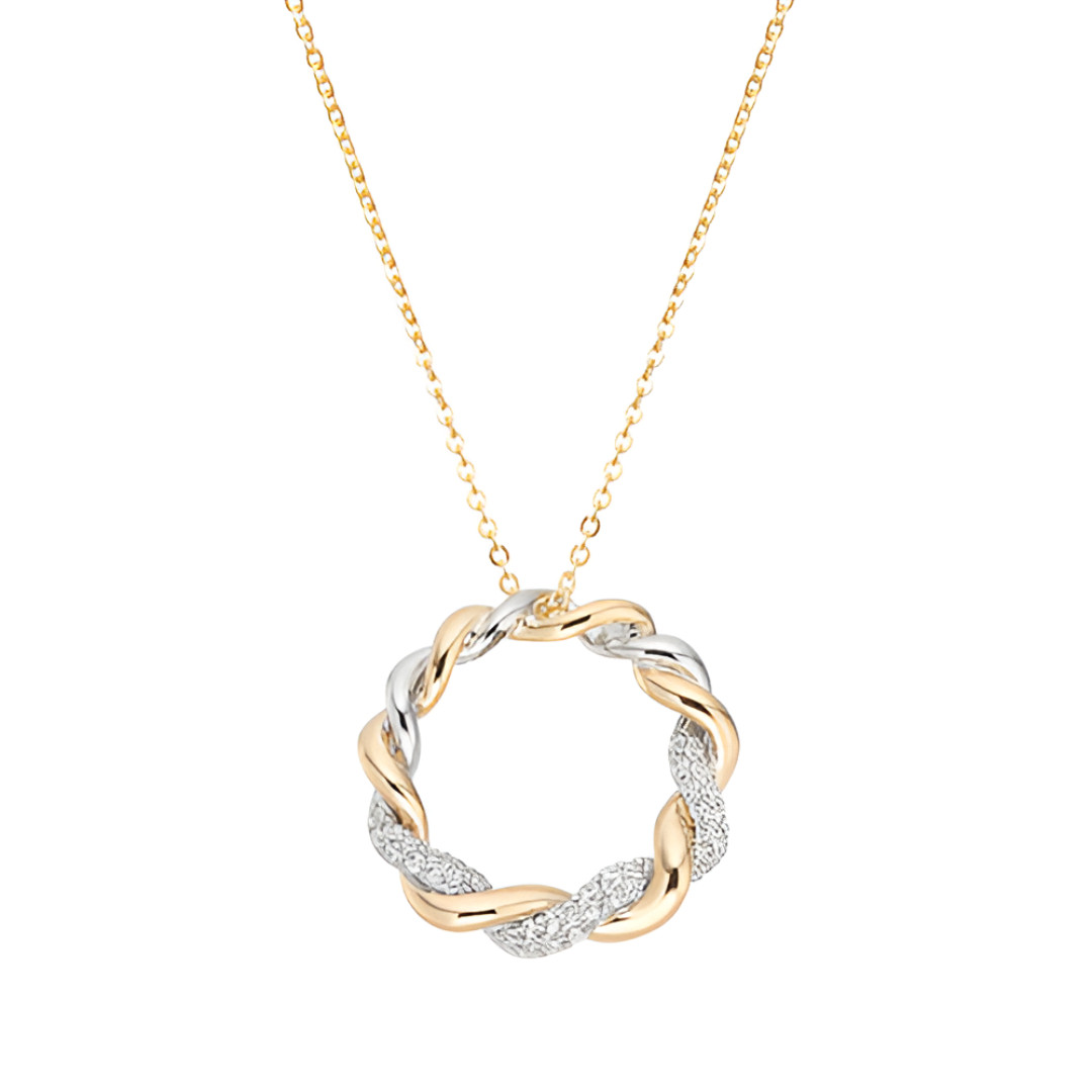 - Crafted in 9ct yellow and white gold, this 17x17mm twist pendant with chain blends classic elegance with modern sophistication.