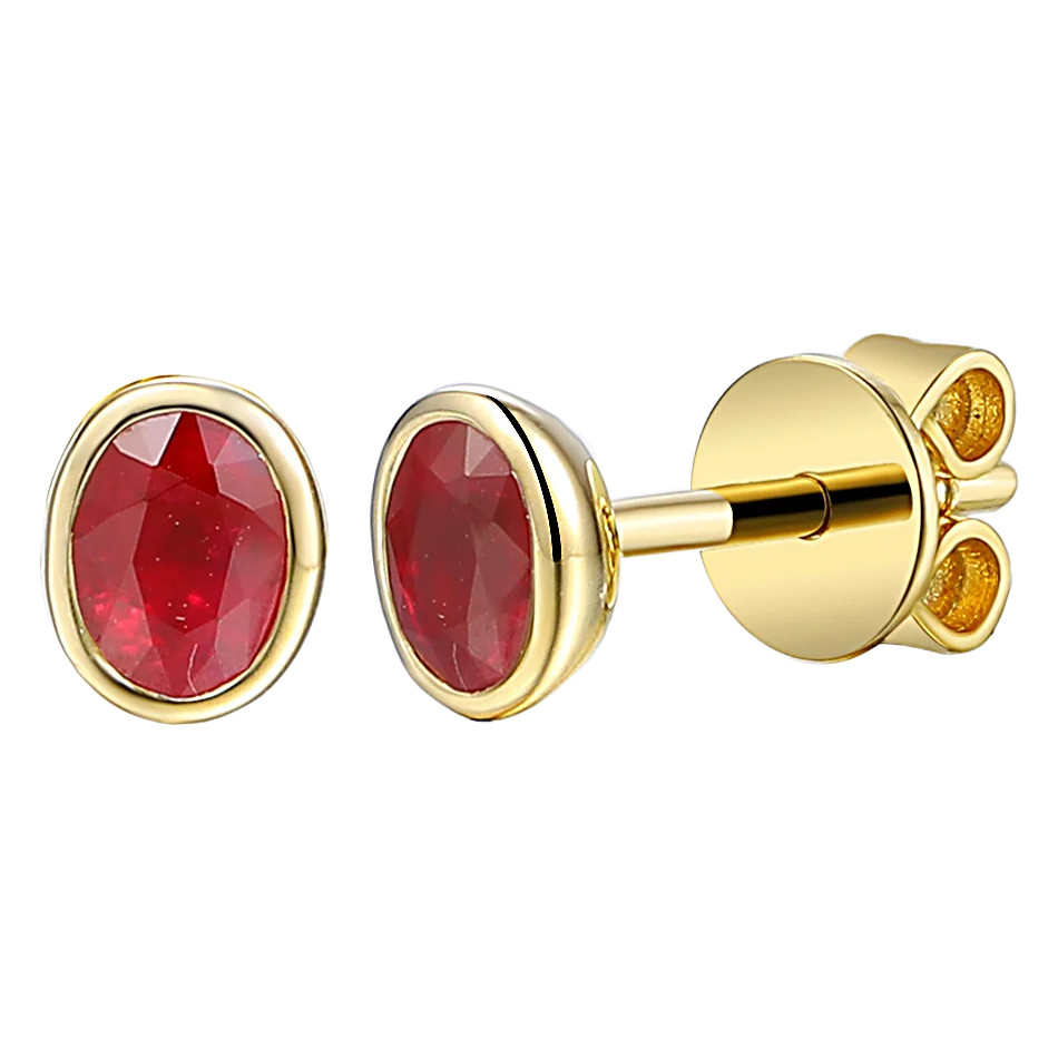 Ruby & Diamond Earrings | 0.31Ct Ruby | Oval | 9Ct Yellow Gold