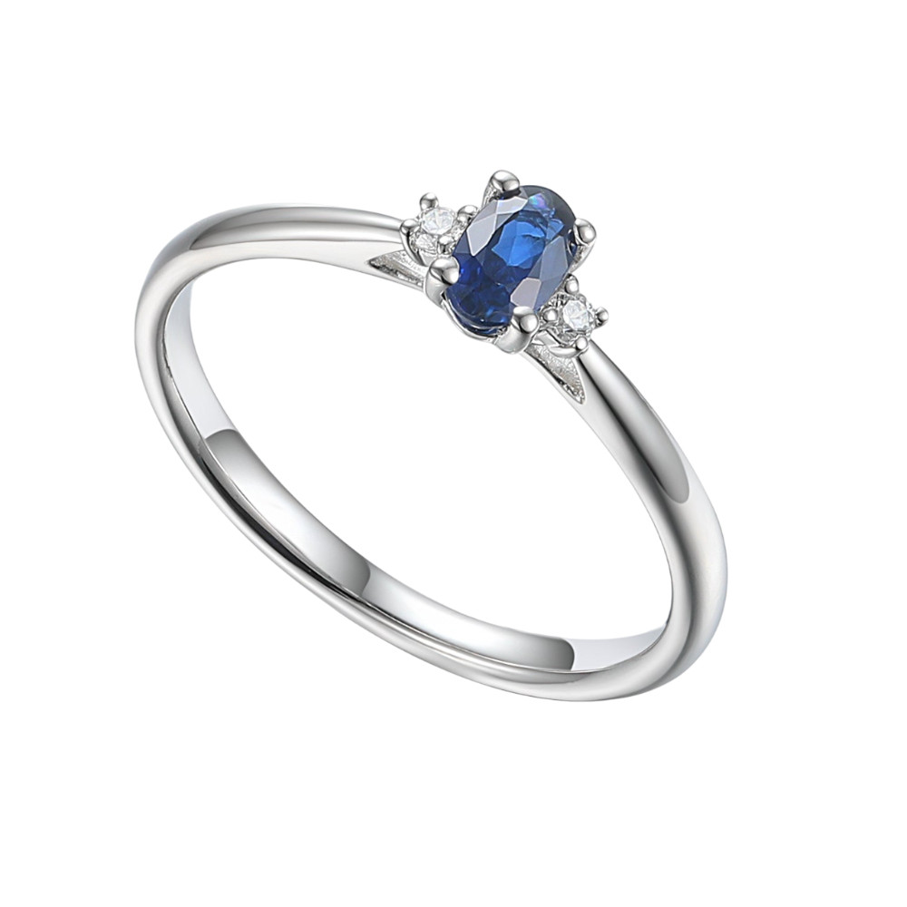 Sapphire & Diamond Trilogy Ring | 0.29Ct Sapphire | 0.04Ct Diamond | Oval | 9Ct White Gold