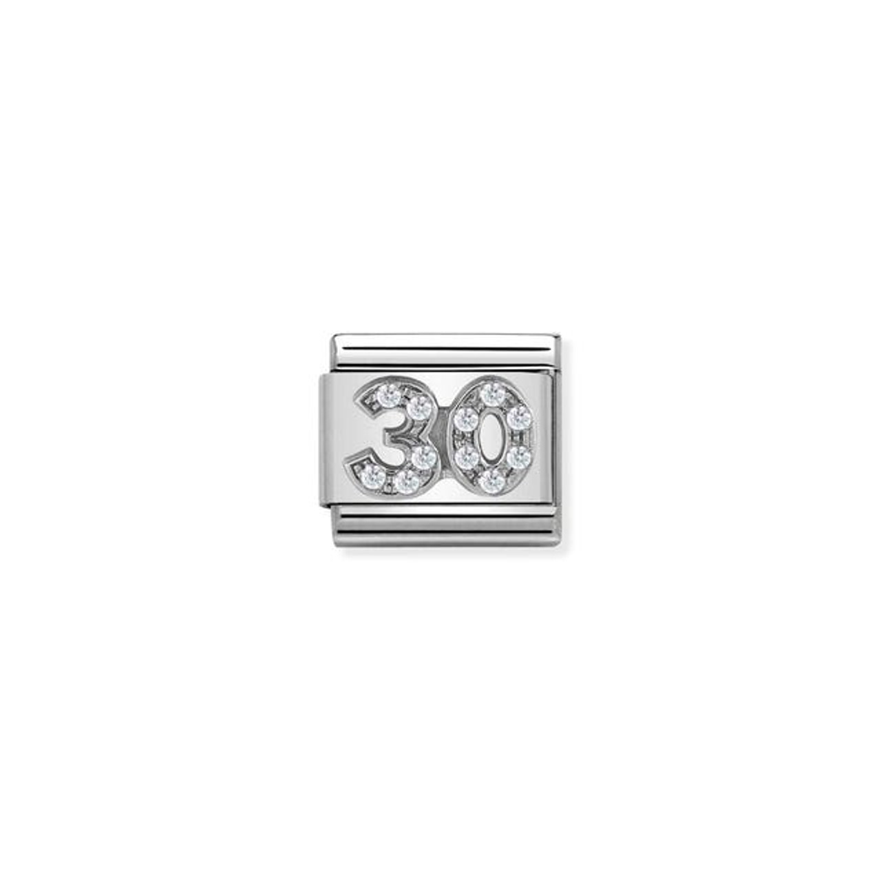 - Original charm for Nomination's composable classic bracelet in stainless-steel with the number 30 in sterling silver and white cubic zirconia.