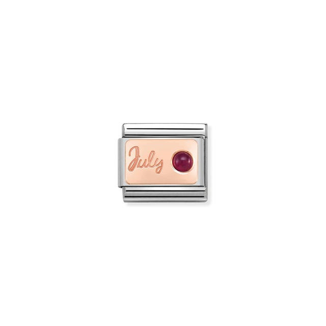 - Give an original charm for the classic composable bracelet in stainless-steel, bonded rose gold and ruby to someone born in july.