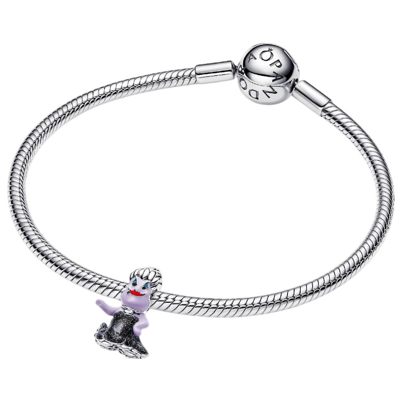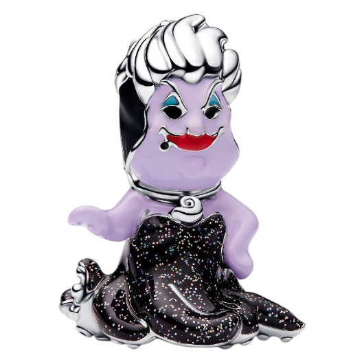 - Bring the magic of the sea to your collection with the Pandora Disney Ursula Charm, crafted in sterling silver with black, purple, red, and blue enamel detailing.