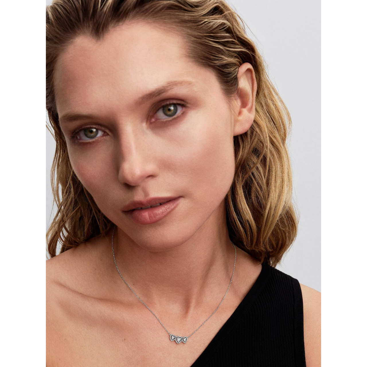 - Elevate your elegance with the Pandora Triple Heart Collier, featuring sparkling clear cubic zirconia on sterling silver, a timeless 45 cm necklace perfect for every special occasion.