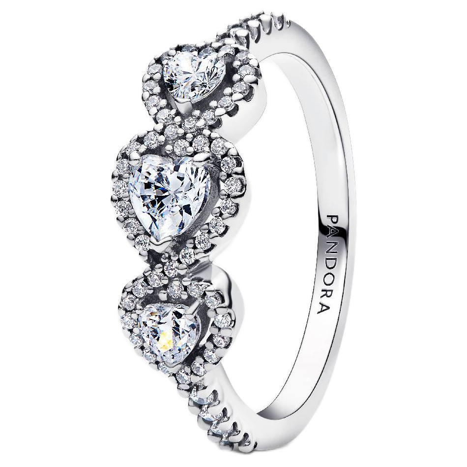 - Add subtle sparkle to your look with the Pandora Triple Heart Ring, detailed with clear cubic zirconia and crafted in sterling silver. A graceful symbol of love in size 54mm.