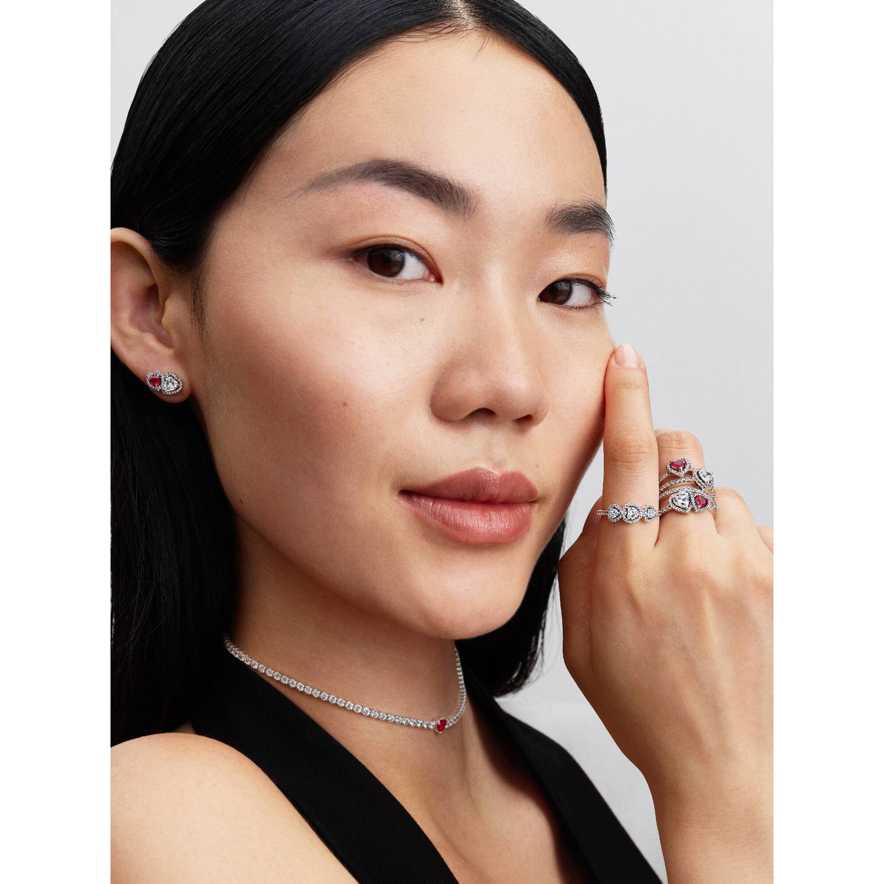 - Add subtle sparkle to your look with the Pandora Triple Heart Ring, detailed with clear cubic zirconia and crafted in sterling silver. A graceful symbol of love in size 56mm.