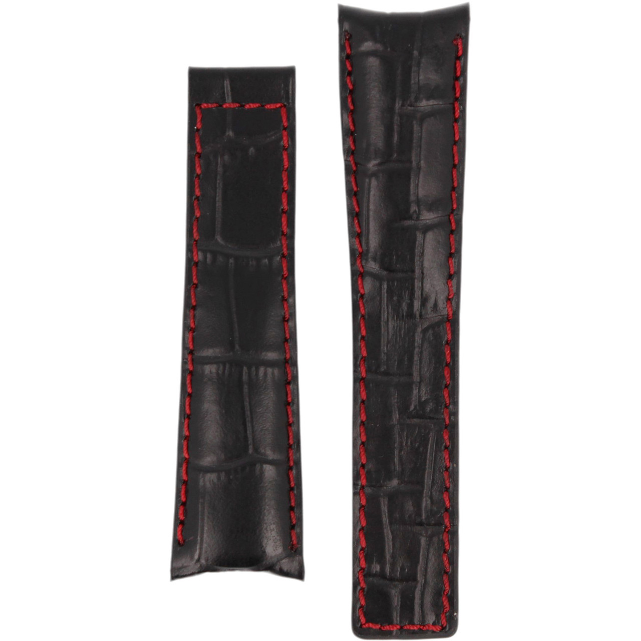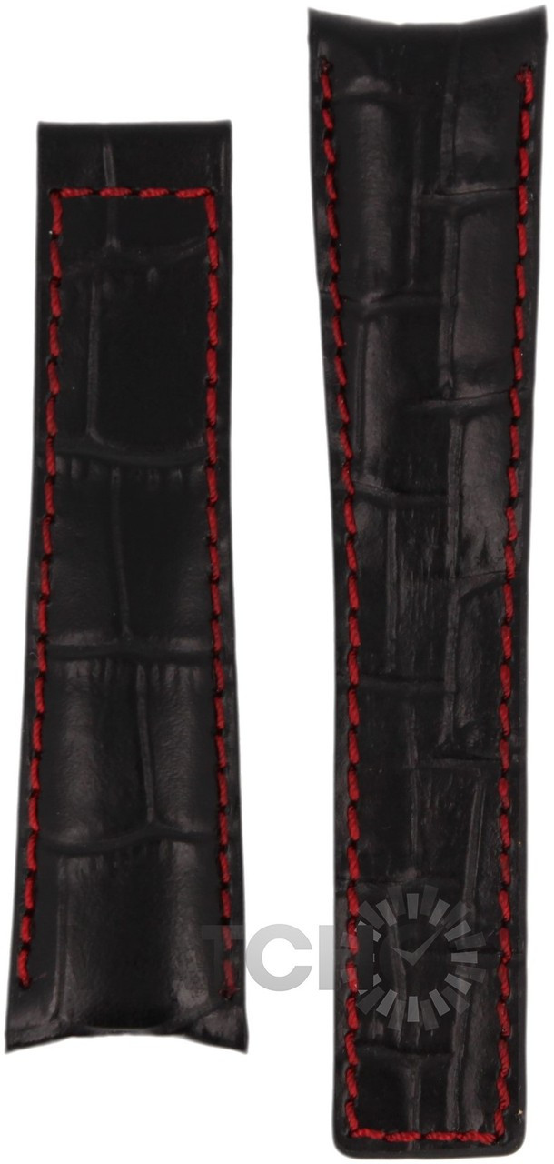 Black Crocodile-Style Leather Strap With Red Stitching.