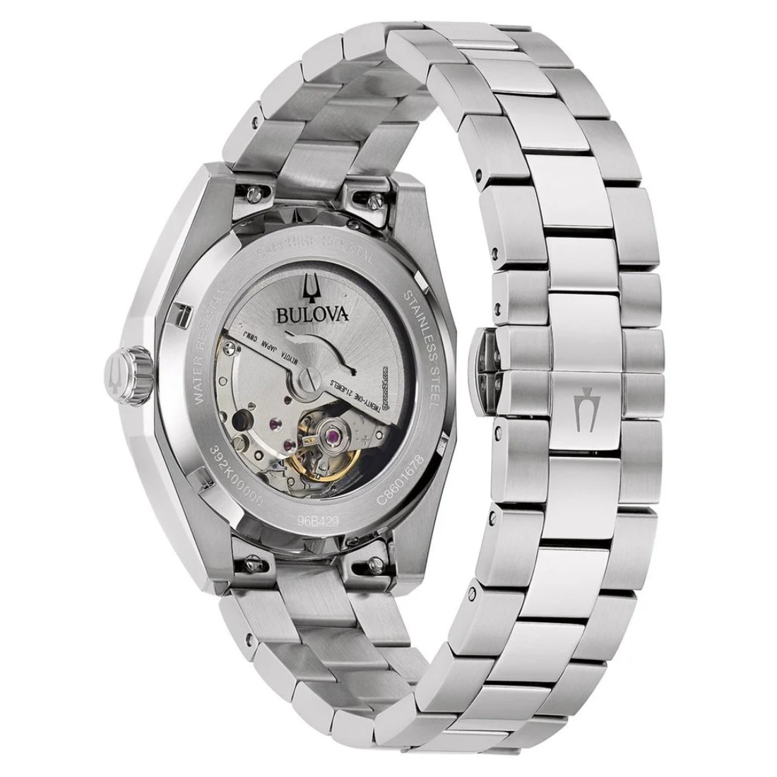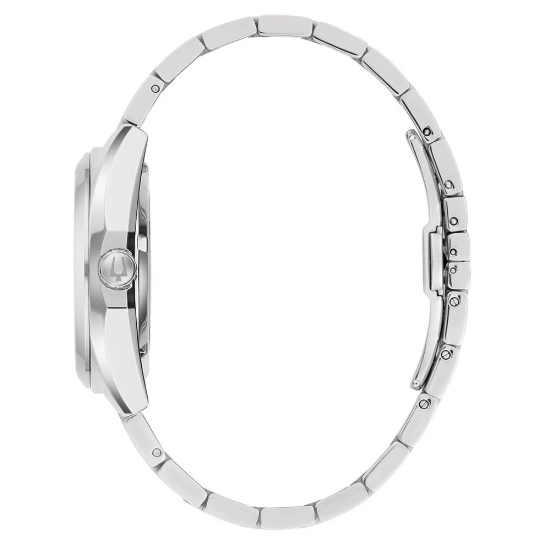 - A partially satin-finished stainless steel bracelet finished with a butterfly folding clasp with side pushers to ensure security on the wrist.