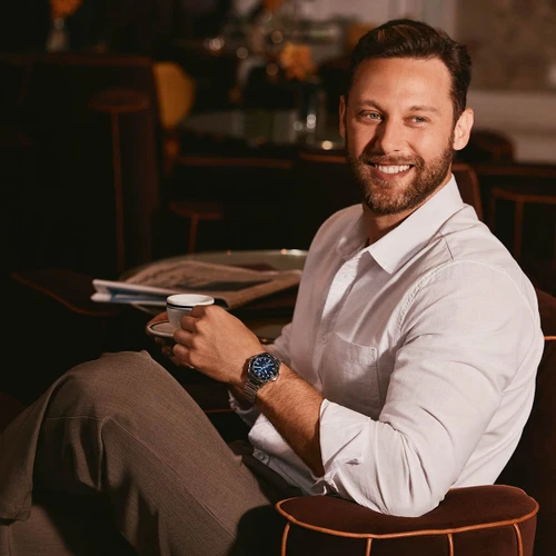 - The unidirectional bezel features a bi-colour aluminium insert with a timing scale, complementing the blue and black design for a bold, sporty look.