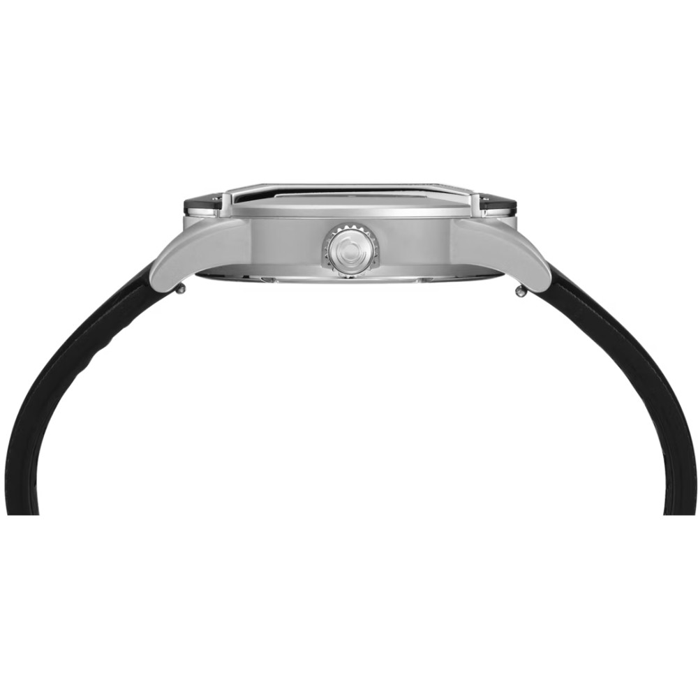 - Black rubber strap finished with a pin buckle clasp with quick-release system to ensure security on the wrist.
