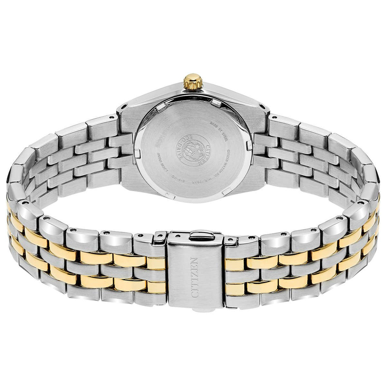 - Two-tone stainless-steel bracelet finished with a fold over clasp to ensure security on the wrist.