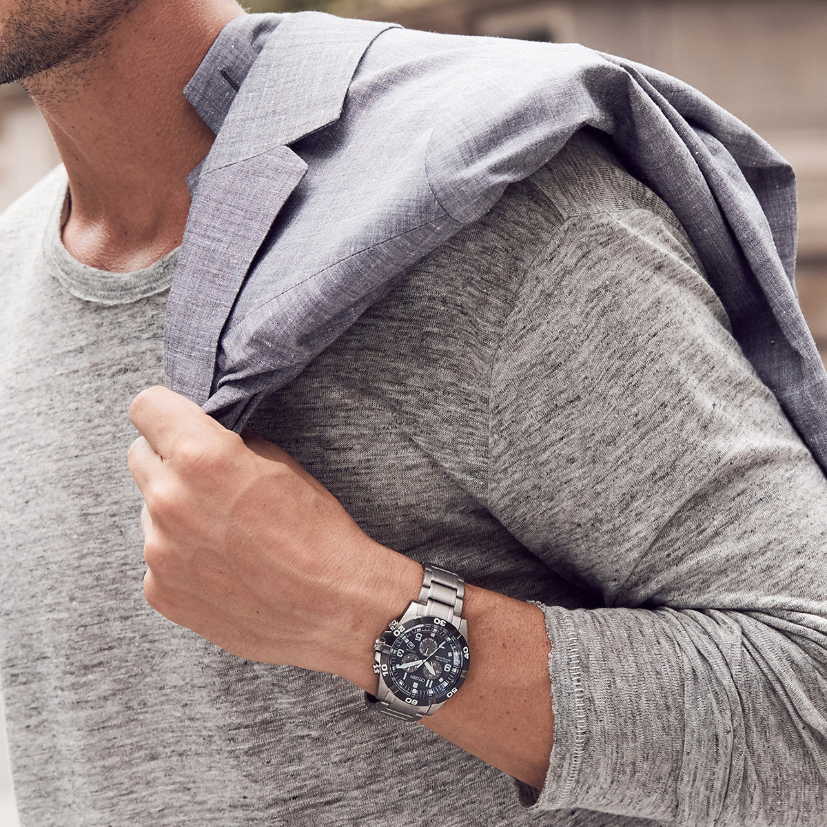 - Silver-tone super titanium case watch.
