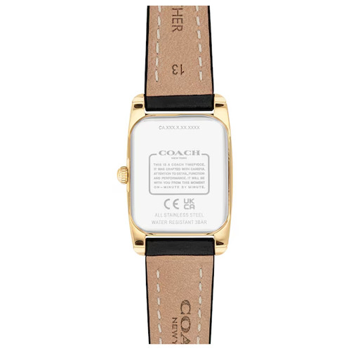 - Black leather strap finished with a buckle closure to ensure security on the wrist.