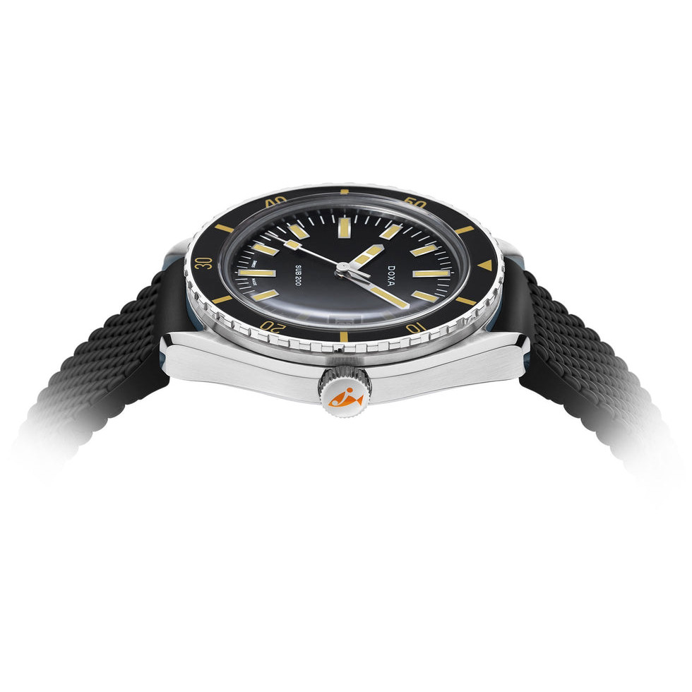 - With a 42 mm case diameter, the SUB 200 is crowned by a beautifully domed plexiglass crystal, echoing the distinctive vintage curvature of the original models.