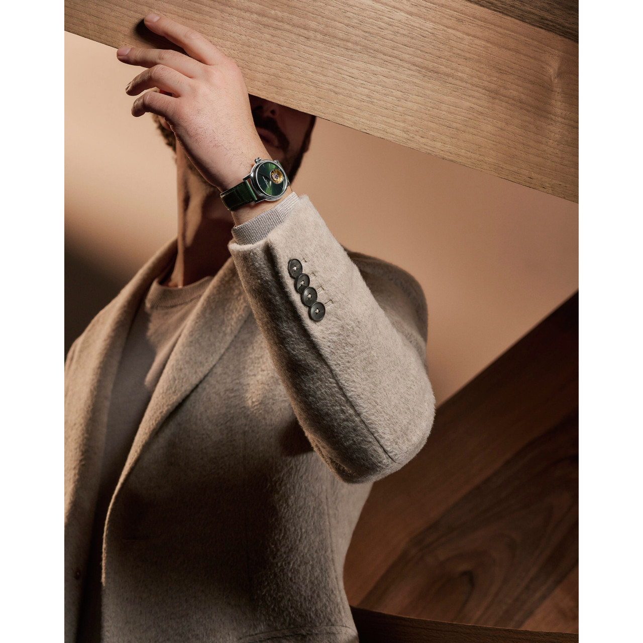 - The new model embodies a captivating blend of traditional Fine Watchmaking and unashamed modernity, with a green sunburst dial adding a dynamic and contemporary touch.