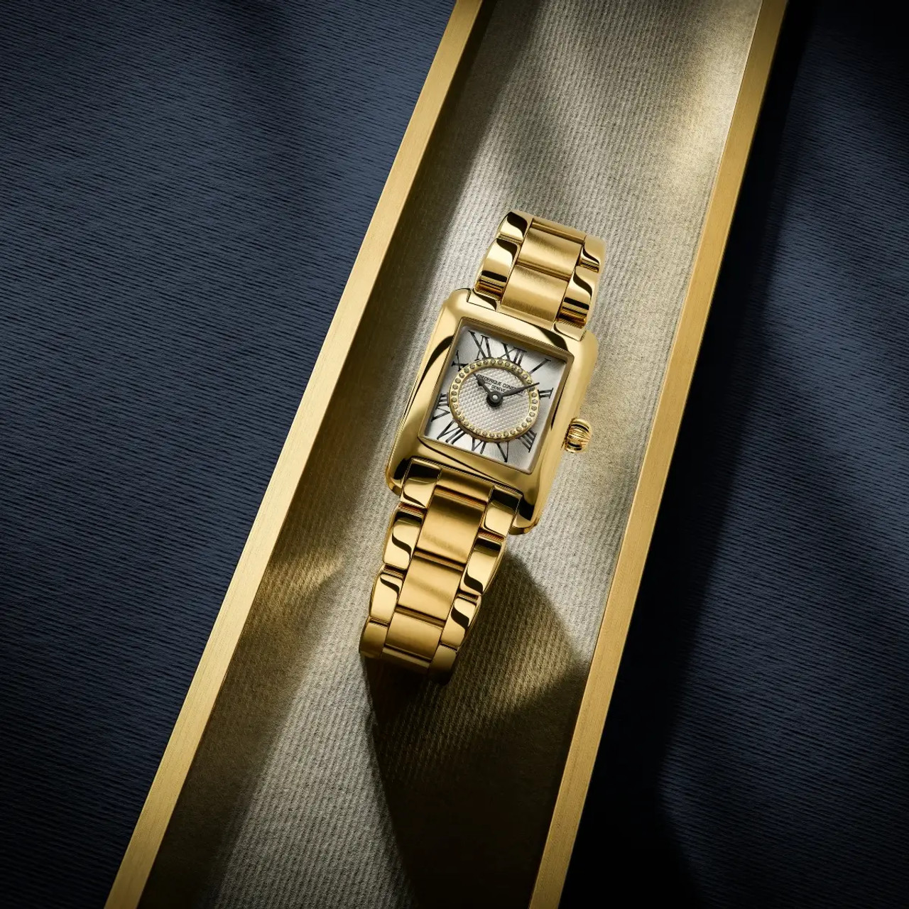 - The carree design of the smooth polished case perfectly blends and embellishes the feminine wrist for a flawless taylor-made match.