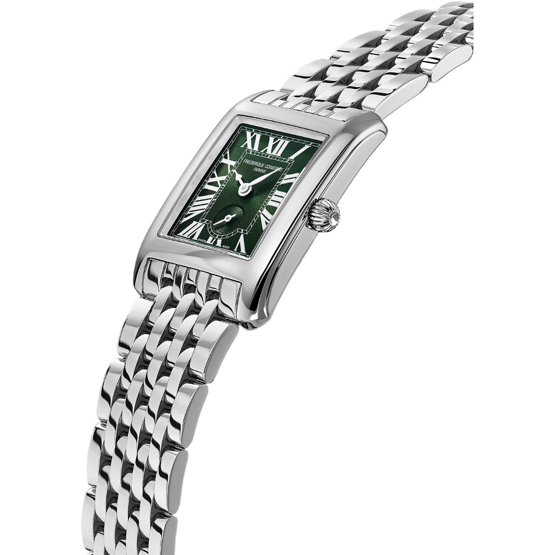 - A british racing green dial Frederique Constant watch.