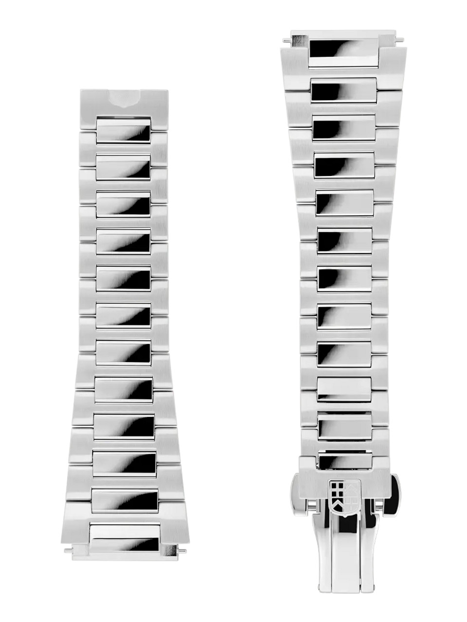 - A green calf leather with a nubuck finish, crocodile pattern strap; finished with a pin buckle to ensure security on the wrist.
