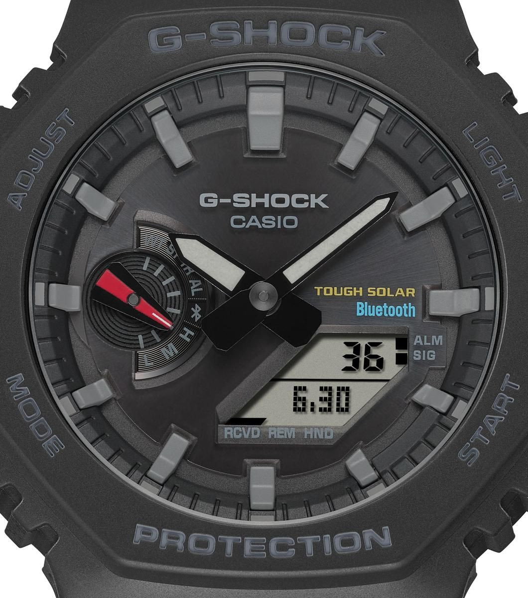 - GA-B2100-1AER has classic black styling with a white LCD.