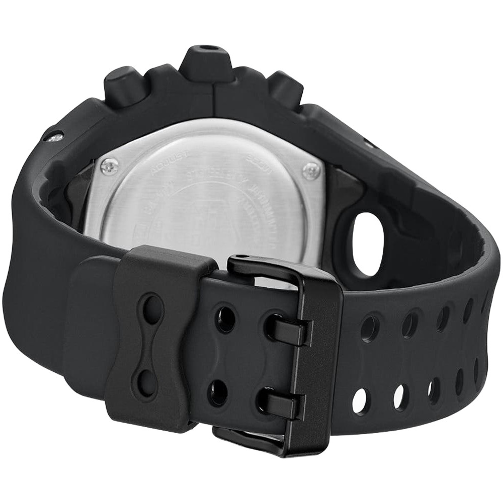 - At its core, the watch's module is securely housed within a centre case, reinforced by an integrated bezel and band structure. Large, dimensional indexes double as shock-absorbing bumpers, delivering a distinctively powerful look while embodying G-SHOCK's legendary durability.