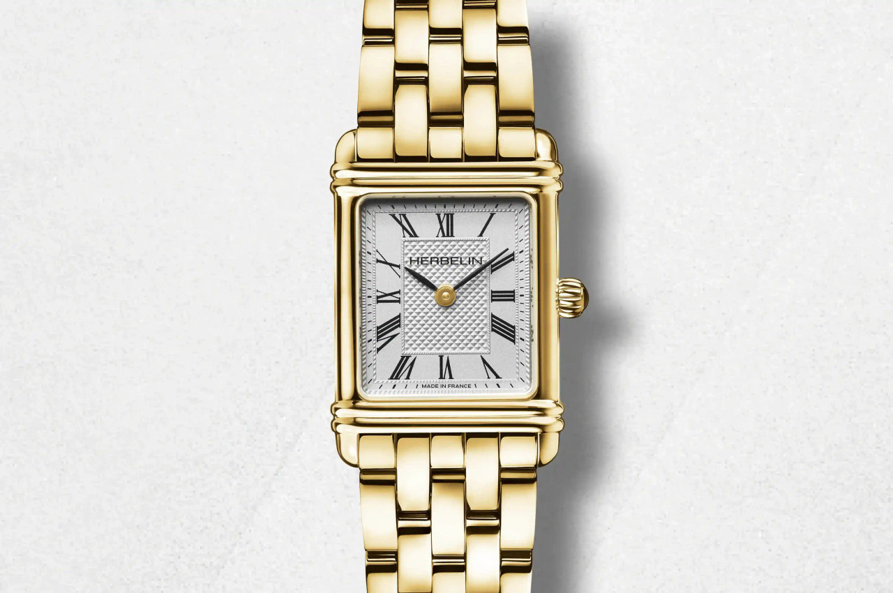 - The silver Clous de Paris guilloche decorated dial Herbelin Ladies watch.