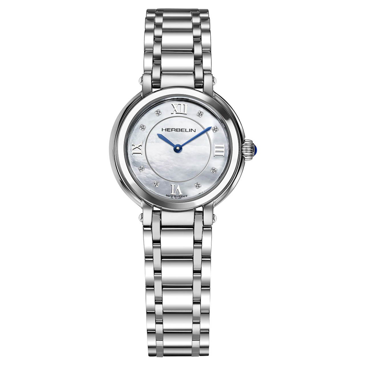 - The dial features two hands, Roman numerals and 8 zircon hour markers.