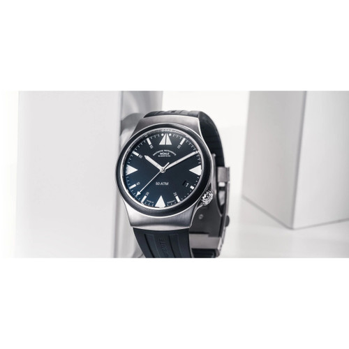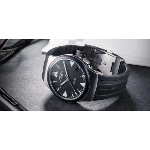 - A rubber strap finished with a titanium folding clasp including extension to ensure security on the wrist.