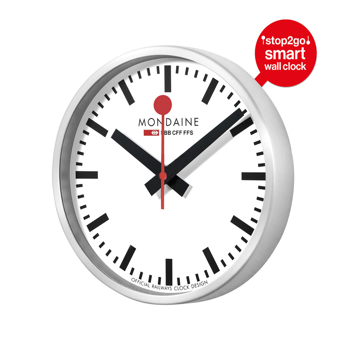 - The software and application that controls the watch are a Swiss development of MMT. Through this software, the connected wall clock is fully integrated in iOS and Android phones, so that the user can set the time using an app specially developed for Mondaine.