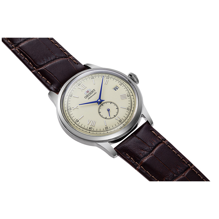- A matte ivory dial Orient Men's watch with a sunray finish.