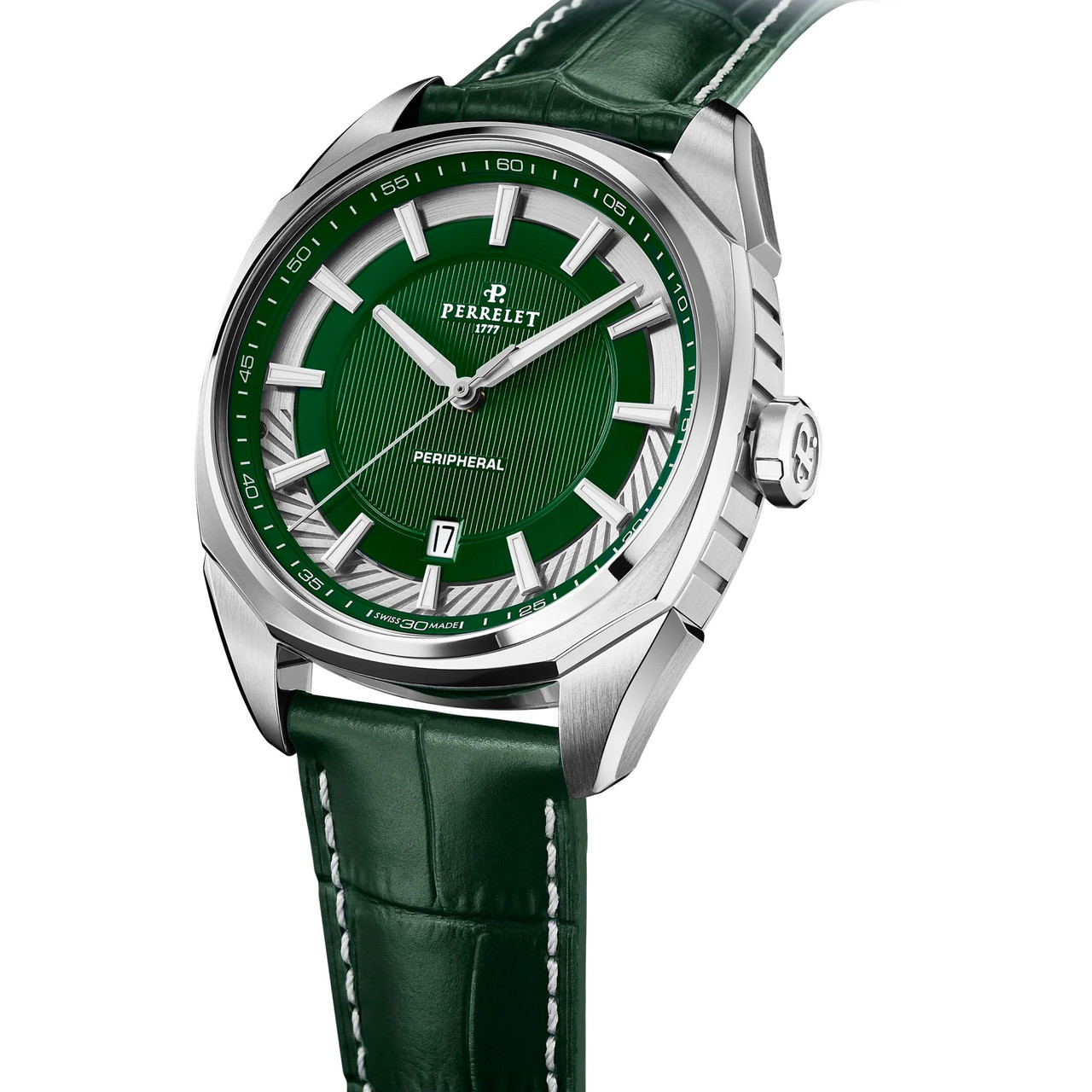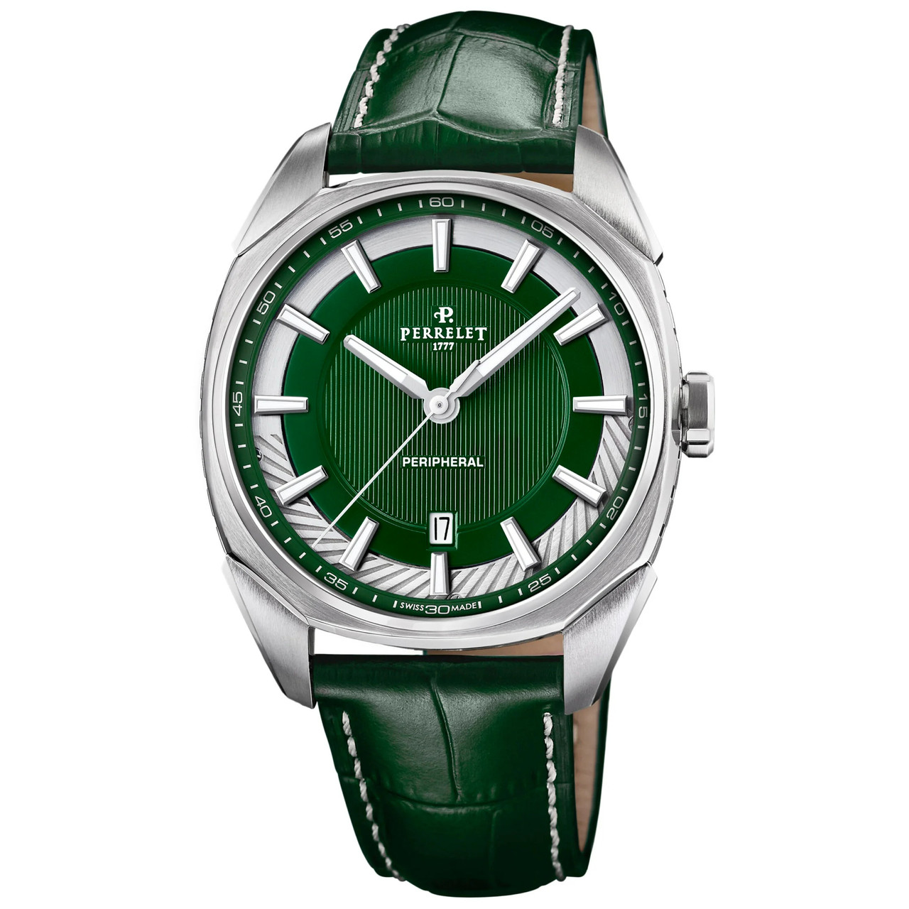 - A green, central part with vertical decoration and circular-brushed rim, surrounded by a matt sandblast ring Perrelet Men's watch.