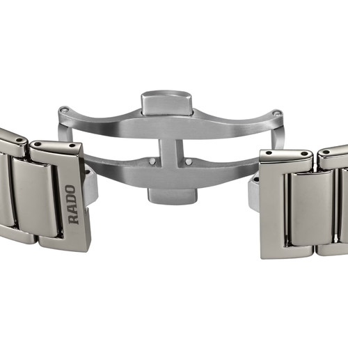 - The dial was developed using a unique electro-forming process that produces a diamond-powder like finish and permits the Rado logo, markings and minute tracks to be raised in relief from the base of the dial, the end result of galvanic growth.