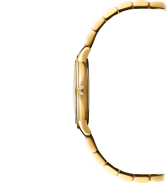 - Stainless-steel case watch with yellow gold PVD plating.
