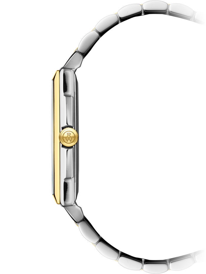 - A stainless-steel case with yellow gold PVD plating watch.
