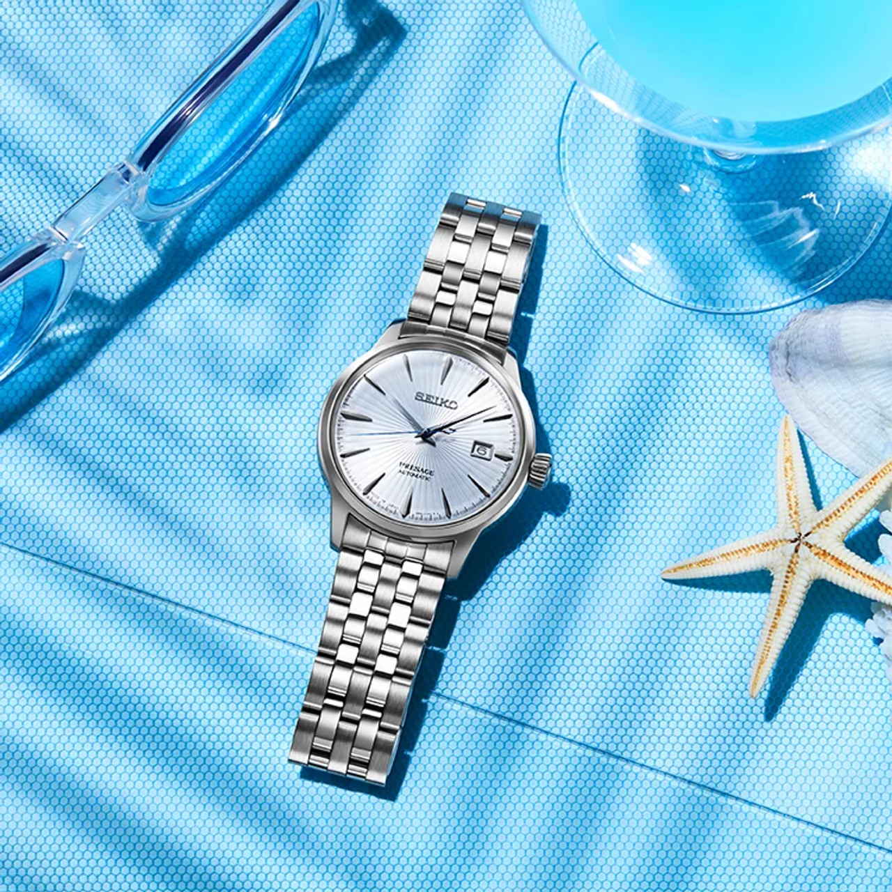 - Inspired by the elegance of Tokyo’s Skybar in the heart of Ginza, this timepiece captures the refined beauty of the Skydiving cocktail. Its delicate blue dial evokes the cool, crisp tones of the drink, blending sophistication and subtle charm in every detail.