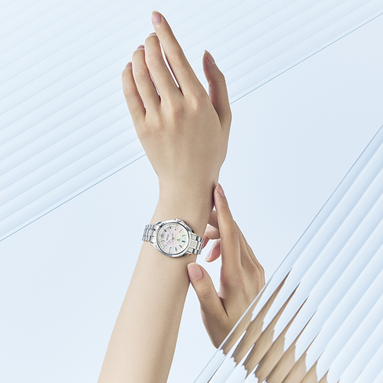 - The mechanism used is an in-house-built 6N01 quartz movement.