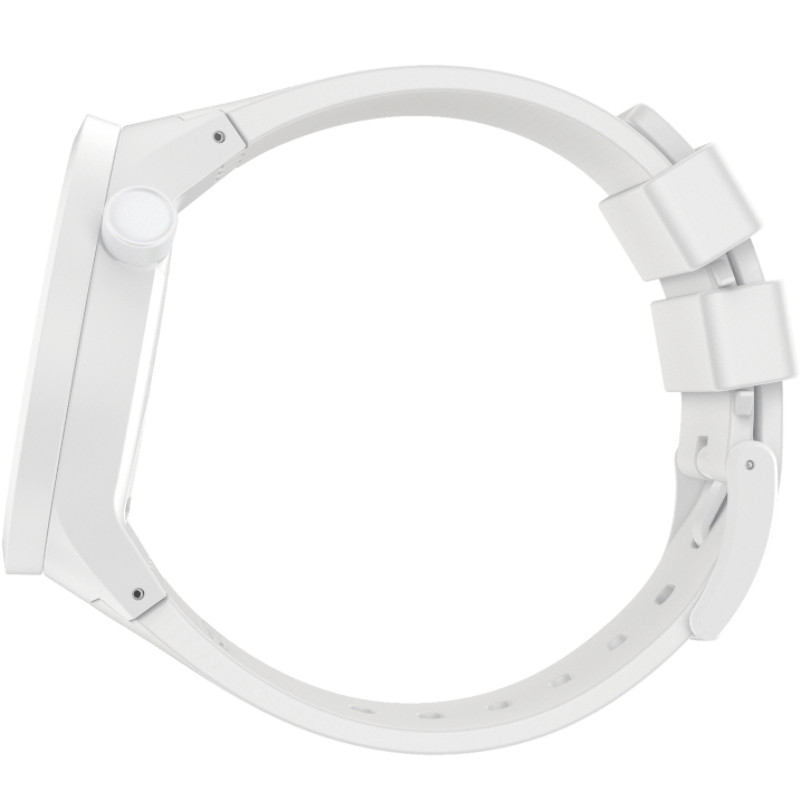 - Solid matte white bio-sourced material strap with half buckle clasp to ensure security on the wrist.